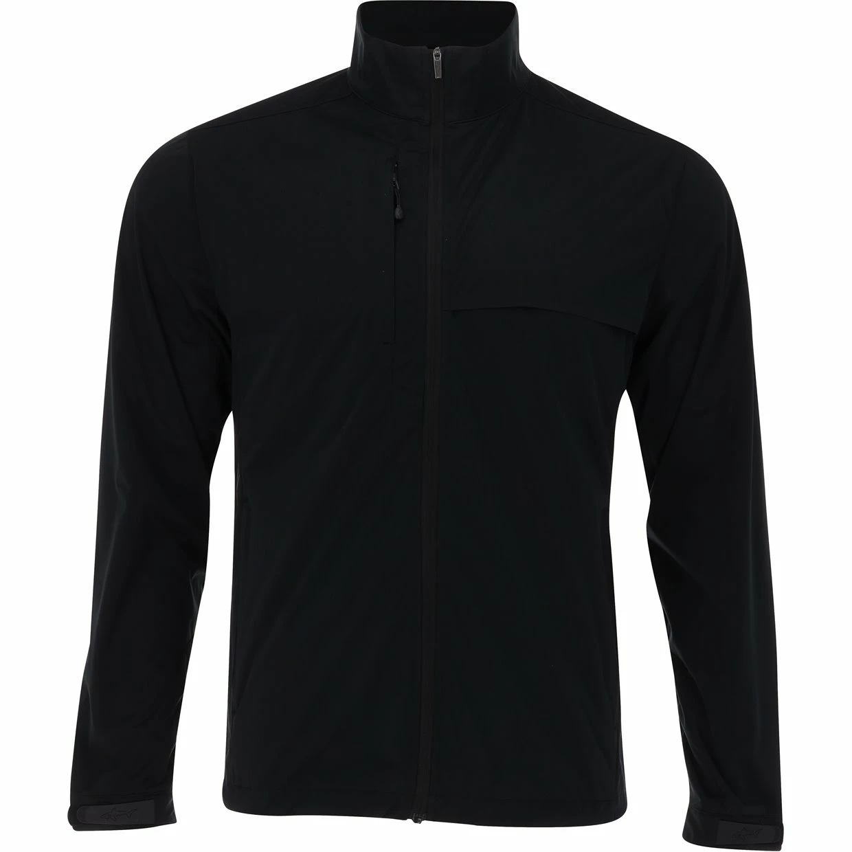 The Greg Norman Weatherknit Long-Sleeve Full-Zip Jacket features 2 zip front and chest pockets, shark logoed velcro closure on cuffs, comfort stretch tech, interior media port on pocket, breathable front and back mesh ventilation, and a blue-grey shark logo on the back neck to keep you comfortable and stylish… on and off the golf course