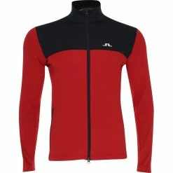 The J Lindeberg Banks jacket features a brushed inside for comfort and warmth and placed side and shoulder seams for increased movement. The fabric offers stretch, durability for machine washing, and quick drying and moisture wicking to prevent sweat build up on the skin.