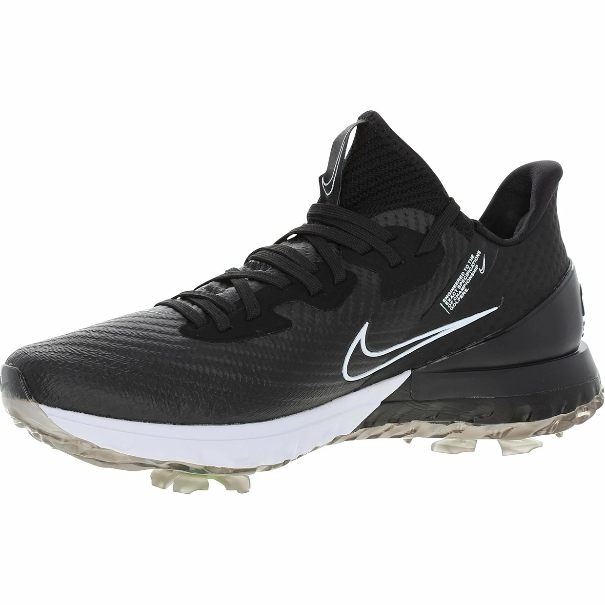Revolutionize your game with the Nike Air Zoom Infinity Tour golf shoe. It delivers exceptional grip and unrivaled comfort and response. The Infinity Tour features a new, innovative traction pattern that is combined with piston spikes to provide the grip you need to maximize the power of your swing. The spikes are placed under 3 Zoom Air units that compress with pressure for better energy return and added comfort. The foam-padded collar and Flyknit upper provide comfort and support as well. The upper is lightweight, breathable, and waterproof. It features a full length Zoom Air unit that provides response with every step.