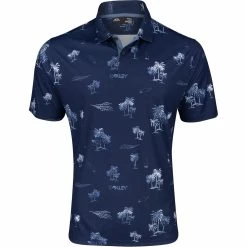 The Oakley RC Sun Shade Print polo features a two-button closure polo, all-over Palms and B1B print, ellipse logo on the left sleeve, and a split hem for supreme style and comfort