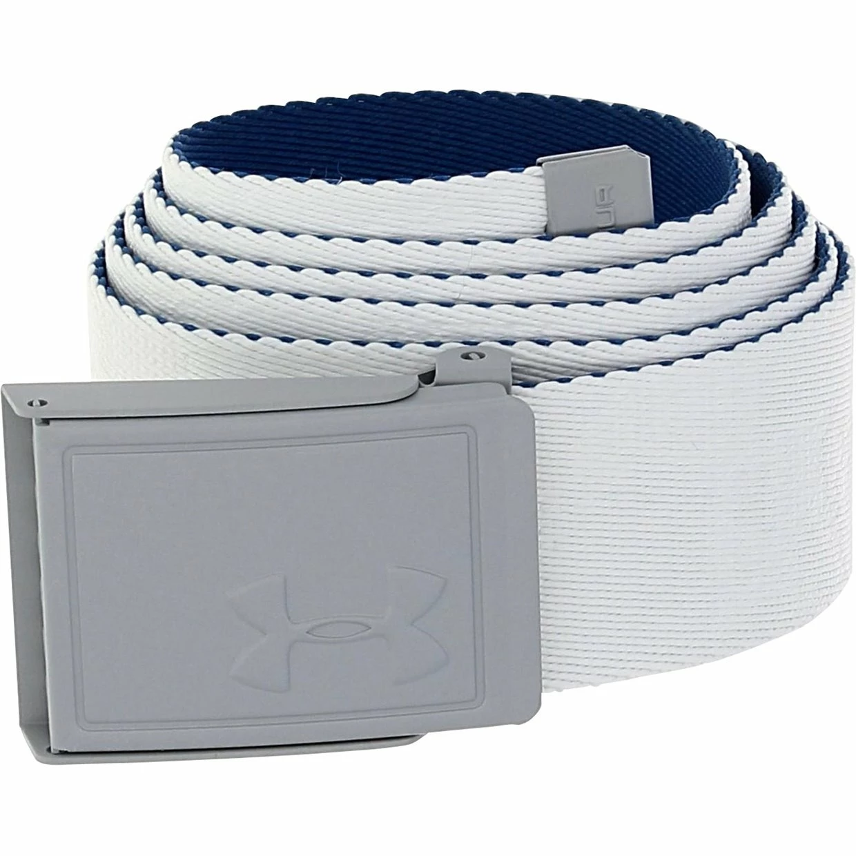 The Under Armour Novelty Web Belt is constructed of durable webbing that offers just enough flexibility paired with a painted metal clamp-shut buckle & end tipping featuring embossed details.
